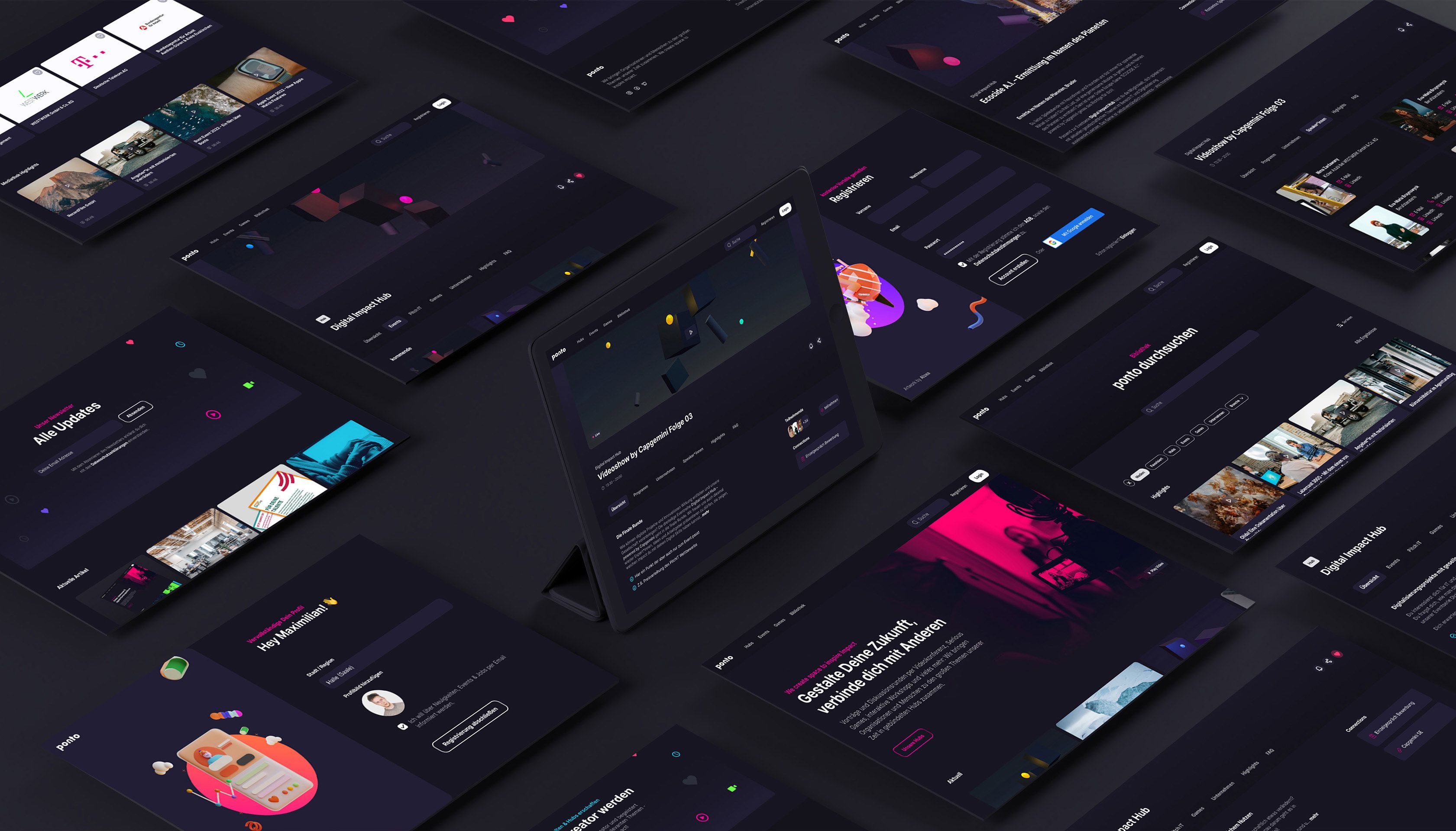 Wie lassen sich Arbeitgebermarken und Karrierewege online erlebbar machen? Mit digitalen Events und authentischem Video-Content! Zusammen mit bluebird, den Profis für Recruitment, Employer Branding und Serious Games, betreiben wir die Plattform ponto.io, auf der wir Arbeitgeber und Talente zusammenbringen. Auf ponto.io finden Videoshows, Recruiting-Events, Jobmessen, Q&A-Sessions, Workshops, virtuelle Meetups und Online-Team-Games statt. Wir sind verantwortlich für die Konzeption von UI und UX, die Programmierung des Front- und Backends, den Betrieb der Plattform, die Gestaltung der Marke und die grafische und technische Realisation der Livestreams und Live-Events, inkl. Video-Regie und Streaming.